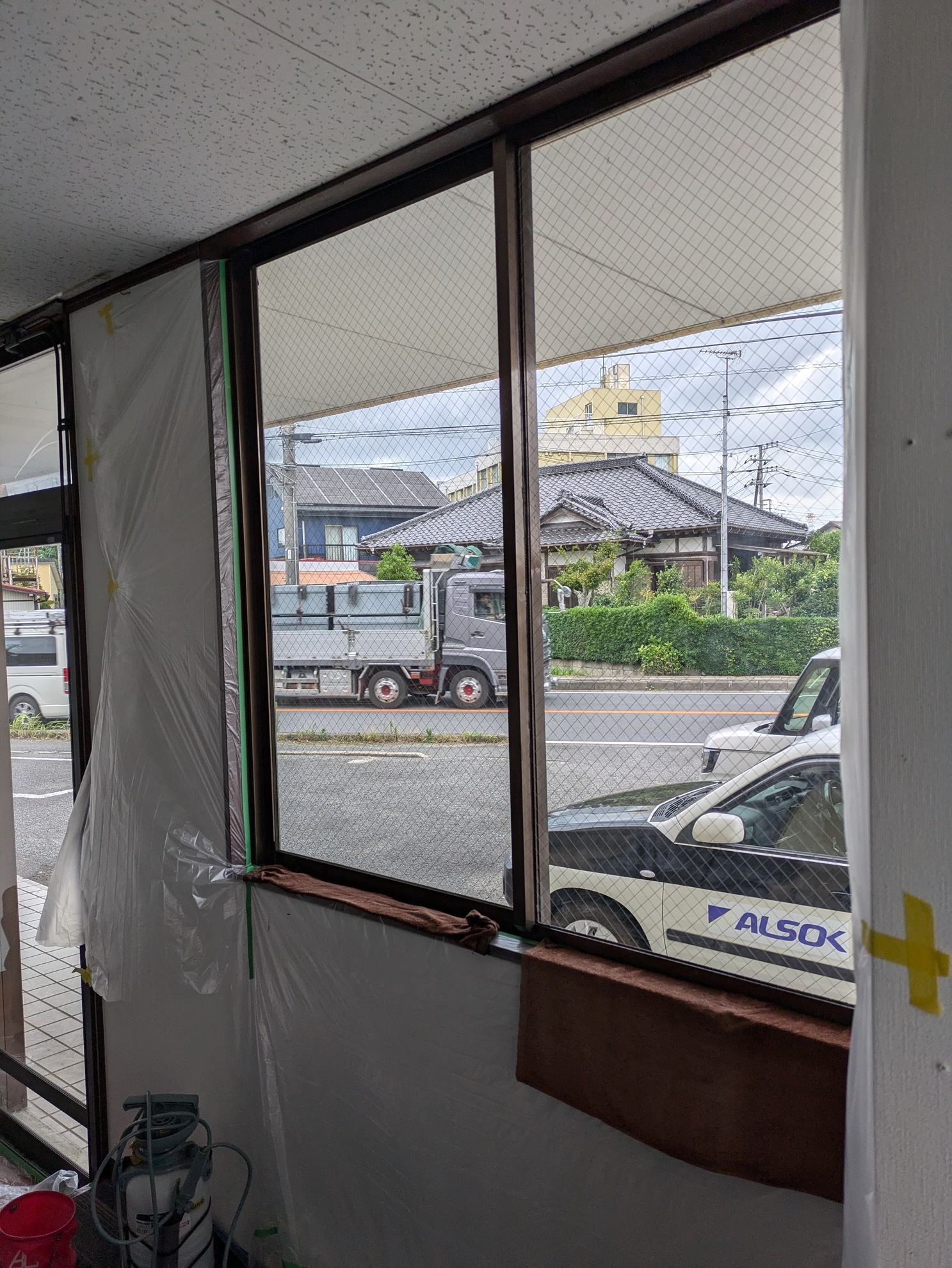 上部の小さな窓は貼終わって、大きな窓に。手際の良さは流石です。